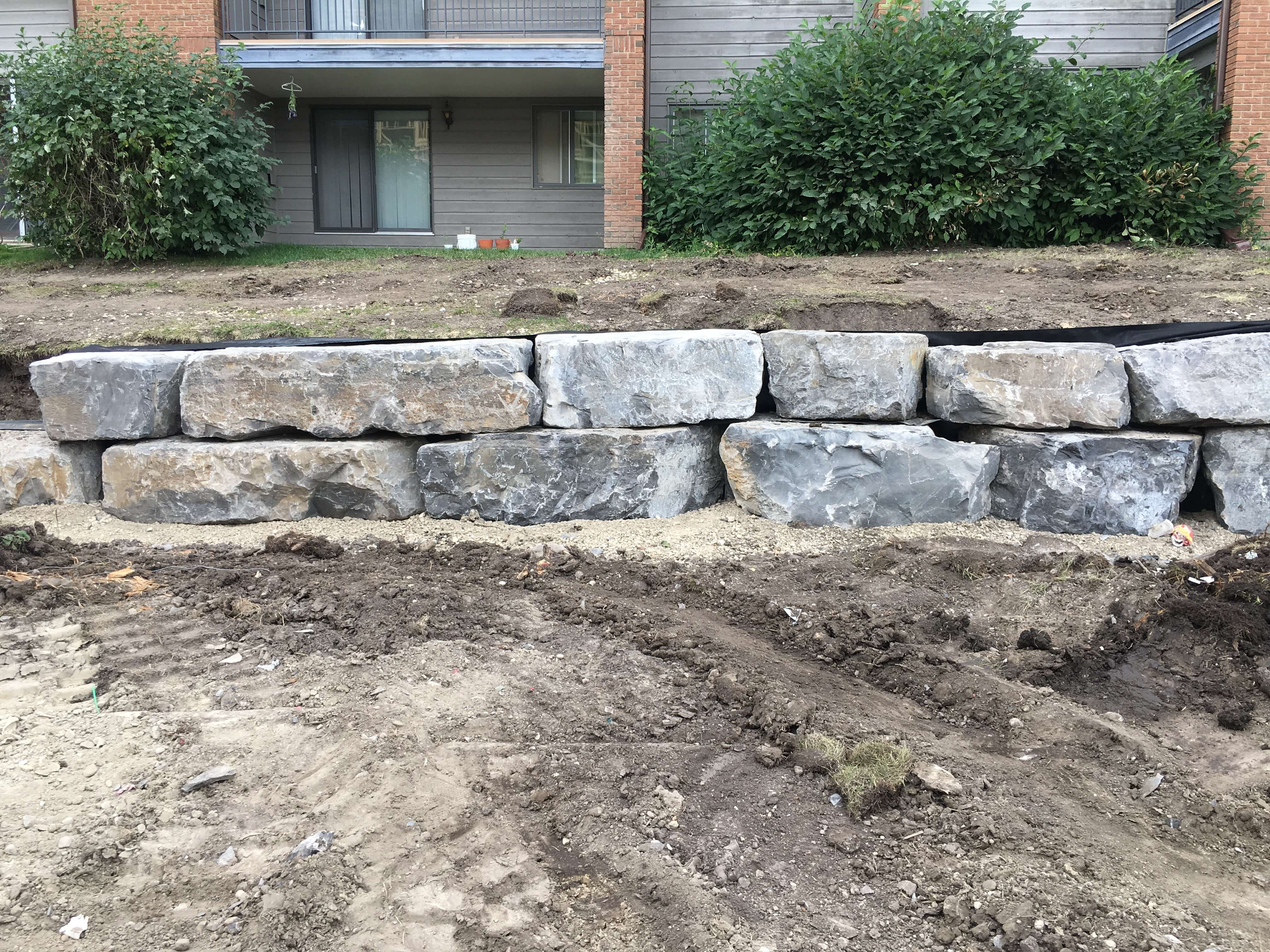 Retaining walls can be built for either aesthetic or structural reasons. These wall systems are flexible in terms of design and require fairly minimal embedment below grade (approx. 6 inches)