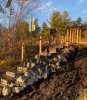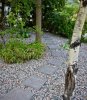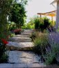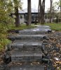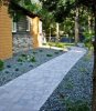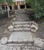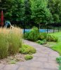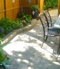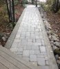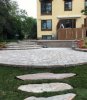 Patios and adjoining paths are created using a wide variety of stones referred to as pavers. The initial process involves laying out the design, setting elevations and excavating where necessary. It is very important to create a gentle slope (approx 1″ / 10′) to run water away from structures.After the initial preparation a minimum 6 inch base is leveled and power compacted several times. The pavers are then laid on a screeted bedding material, power compacted and sanded. Most patios require considerable cutting and must have a high quality edging restraint.Patios tend to be more functional and aesthetically pleasing when connected to other yard features by matching paver pathways.