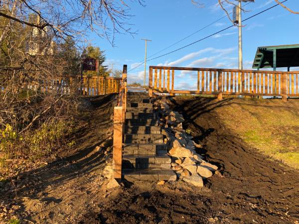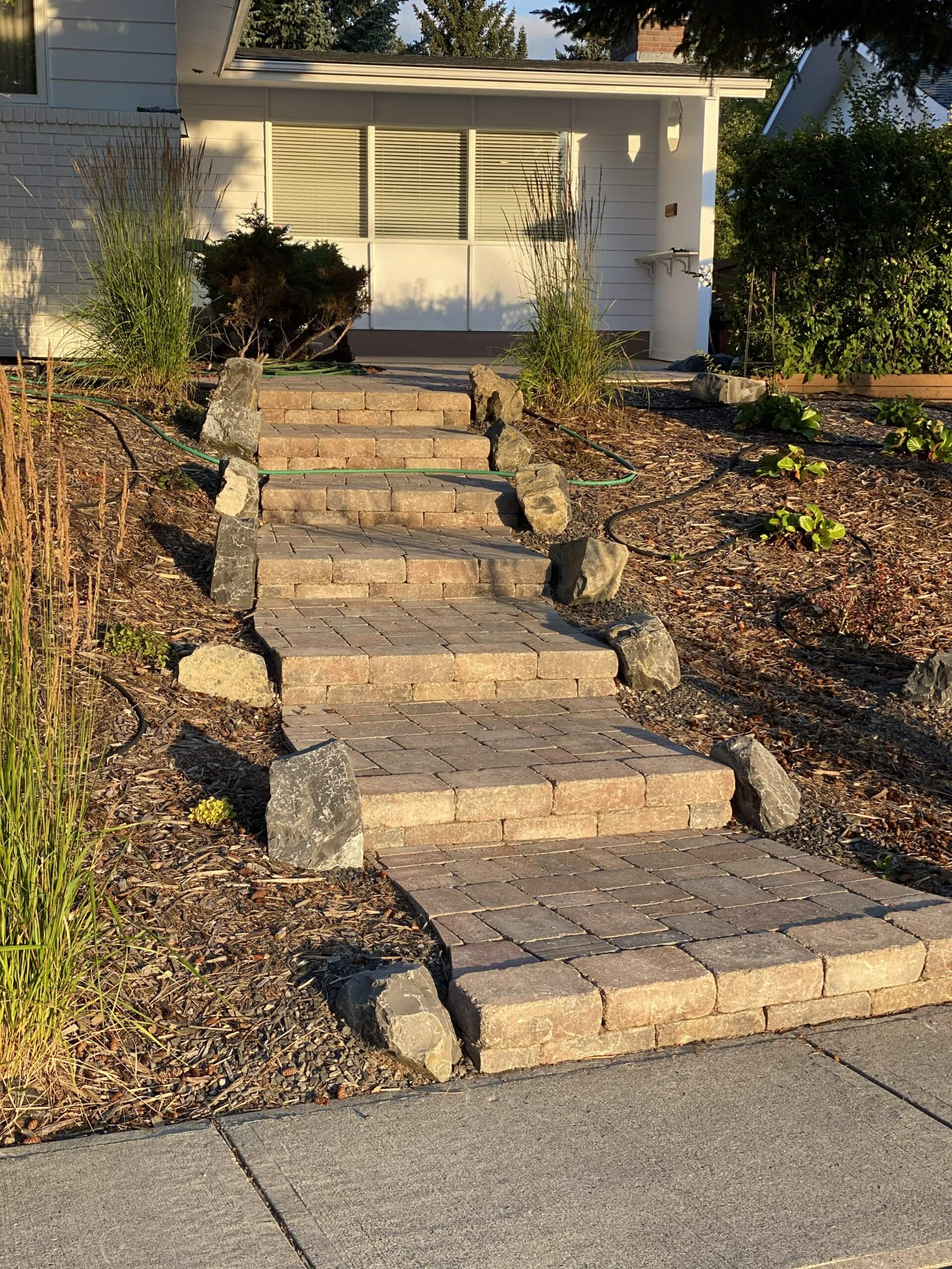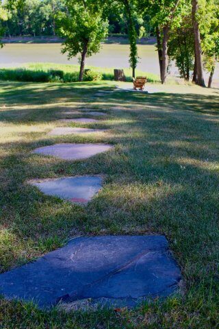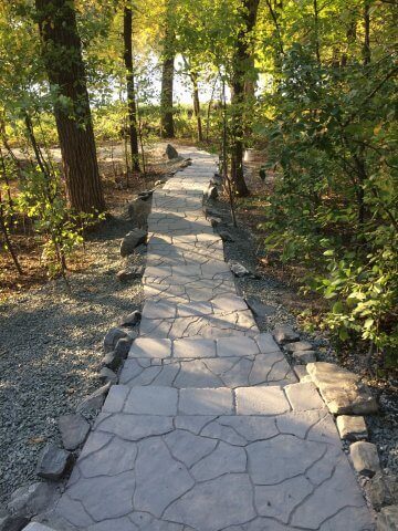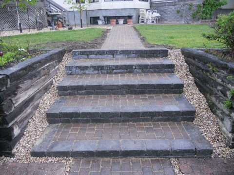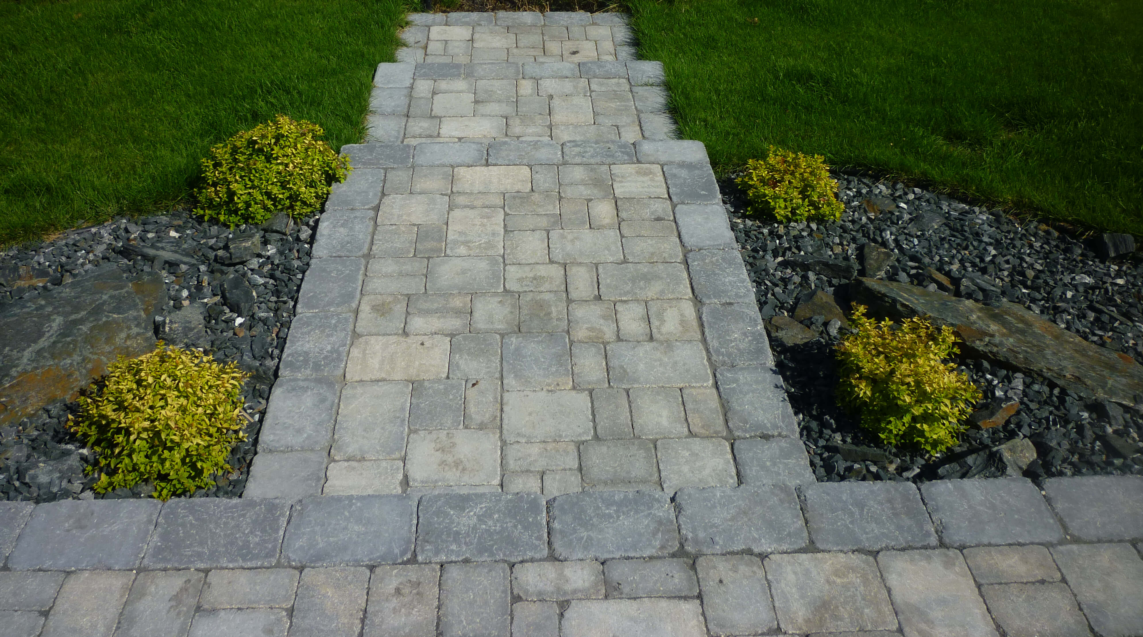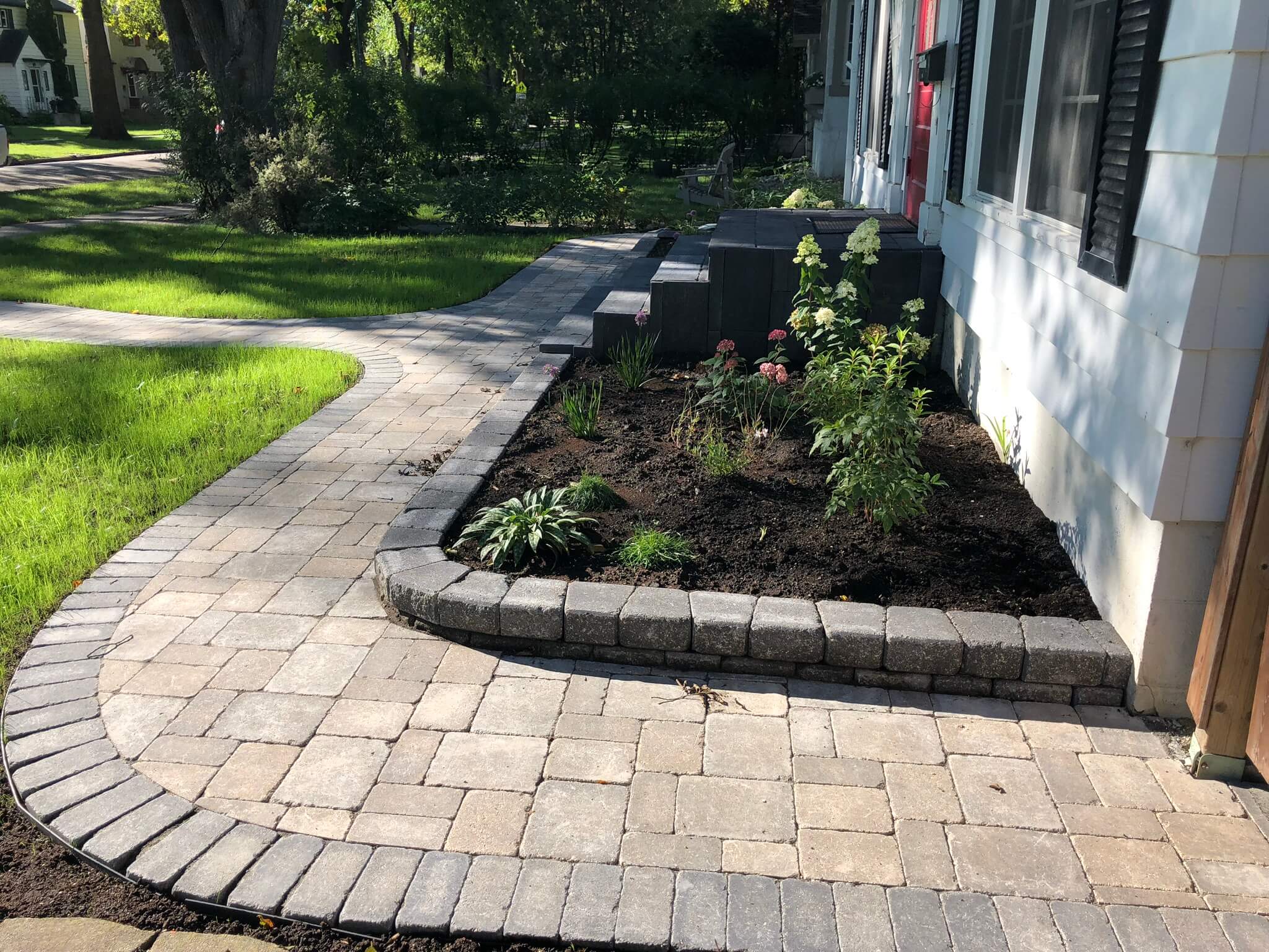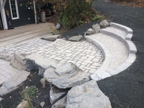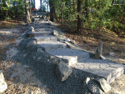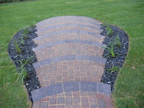 Patios and adjoining paths are created using a wide variety of stones referred to as pavers. The initial process involves laying out the design, setting elevations and excavating where necessary. It is very important to create a gentle slope (approx 1″ / 10′) to run water away from structures.After the initial preparation a minimum 6 inch base is leveled and power compacted several times. The pavers are then laid on a screeted bedding material, power compacted and sanded. Most patios require considerable cutting and must have a high quality edging restraint.Patios tend to be more functional and aesthetically pleasing when connected to other yard features by matching paver pathways.